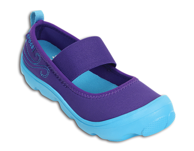 For the girl on the go ? this Mary Jane has a stretchy upper and a stay-on fit. It?s comfortable all day ? think of it as a sneaker with more girl power. Girls? Duet Busy Day Mary Jane (children?s) details: Stretchy neoprene upper for a comfortable fit Stretchy strap, too, for a more secure fit Croslite? material outsole for lightweight comfort Embroidered floral pattern
