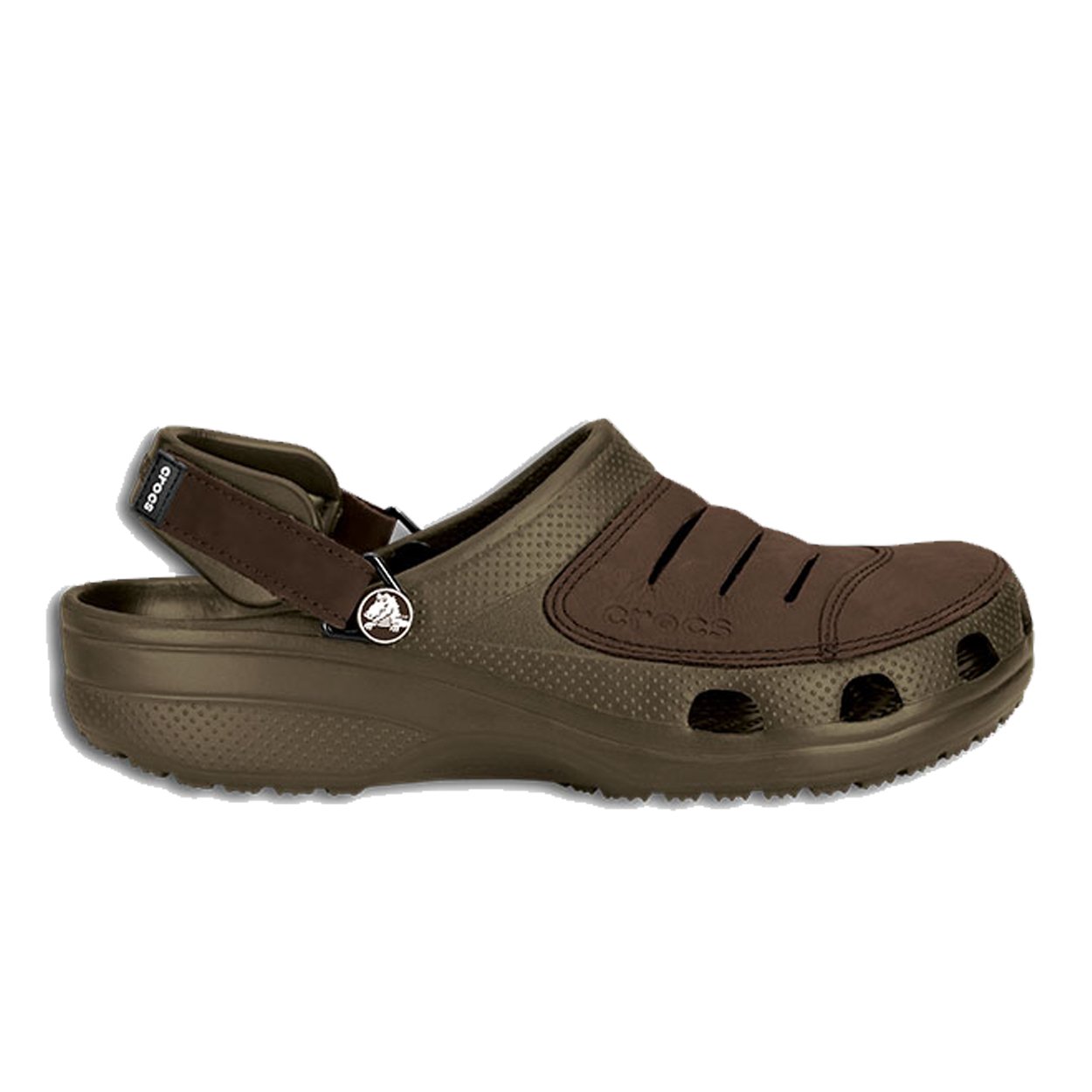 Crocs? Yukon gives you the comfort of clogs with leather details for rugged sophistication. The base for these men?s clogs are the traditional Crocs? Shoes. Then we added a leather upper and neutral color combinations. Now, you can look good without giving up the Crocs? comfort. Crocs? Yukon for men are made of croslite? material for ergonomic comfort that forms to your foot and provides slip-resistant, non-marking soles. The ventilation ports in Crocs? Yukon increase breathability and filter water and debris away from the footbed. The loose fit of Crocs? Yukon allows your foot to bend and expand naturally, reducing fatigue.