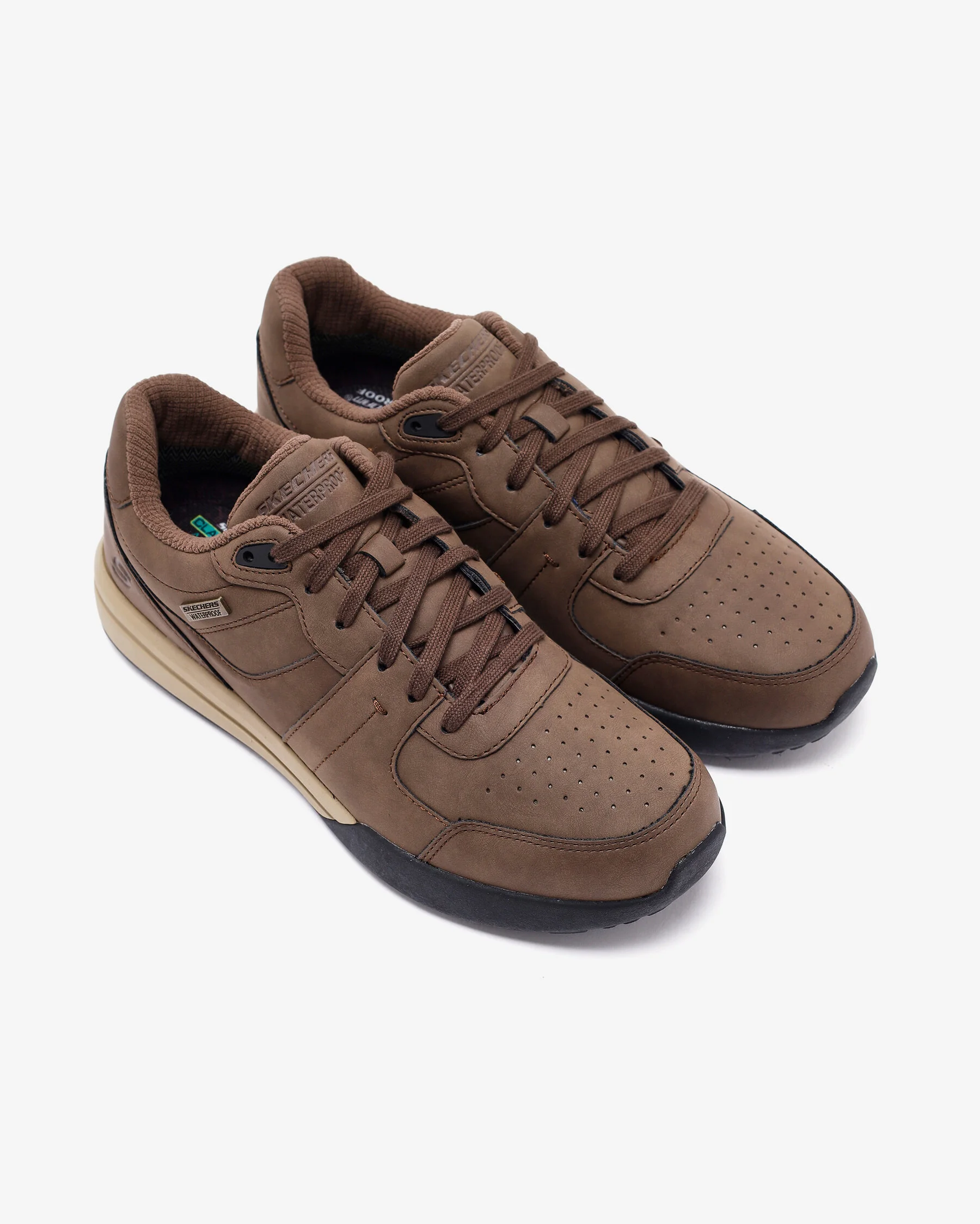 Elevate your wardrobe and look sharp with the comfortably versatile Skechers Men’s Haley Cup Sole- Suit Sneaker. This lace-up features a synthetic duraleather upper with fixed laces and a cushioned Skechers Air-Cooled Memory Foam? comfort insole.