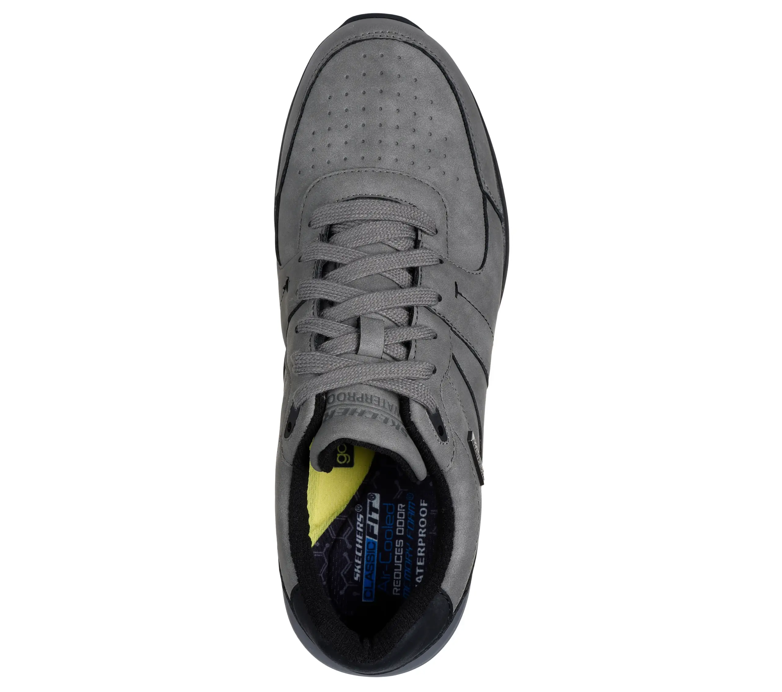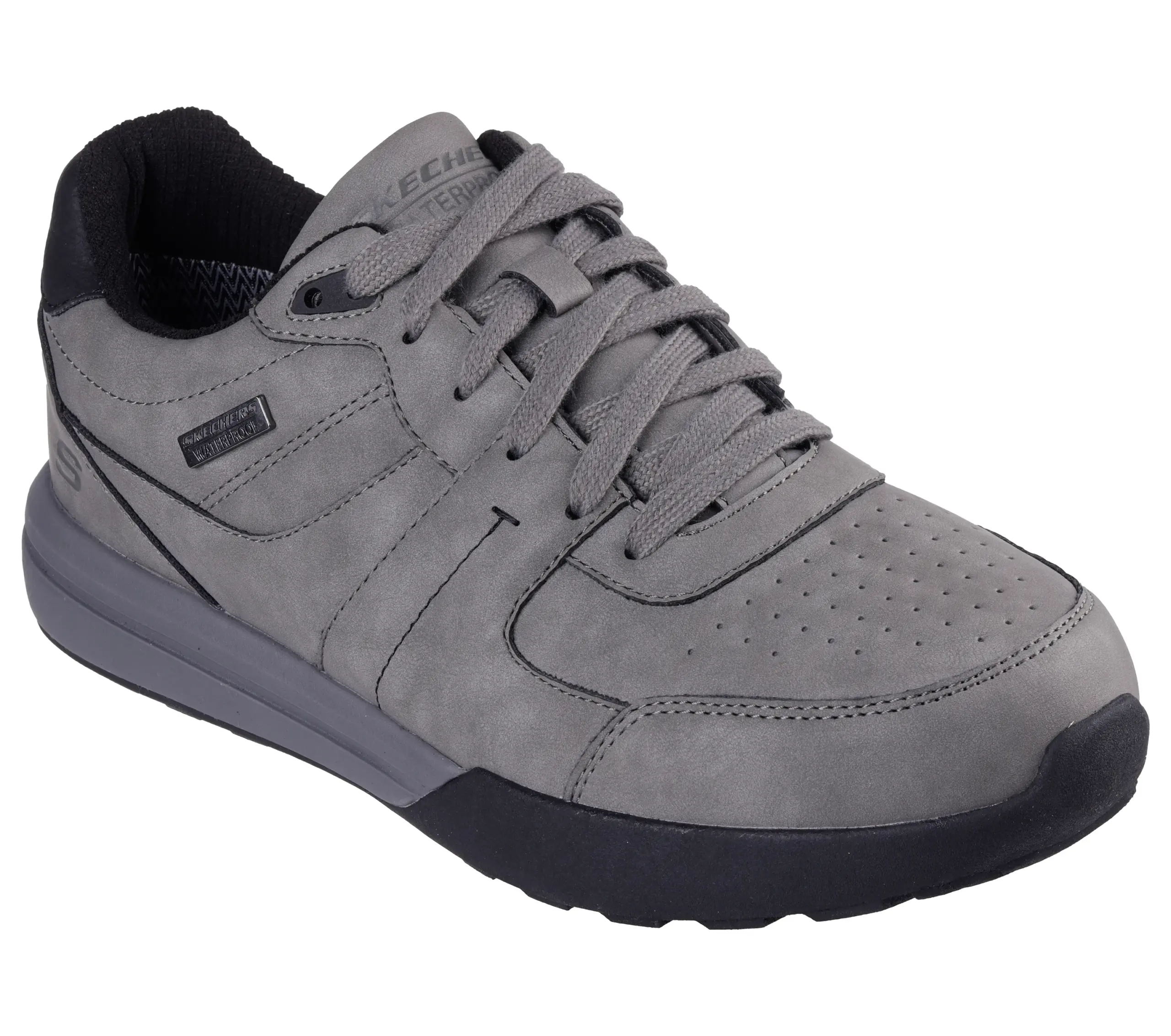 Stay dry in casual comfort and put-together style wearing Skechers Netson – Gander. This waterproof lace-up features a smooth faux leather upper with stitching detail, a charcoal-infused Skechers Air-Cooled Memory Foam? insole, and a Skechers Goga Mat Arch? for added support.