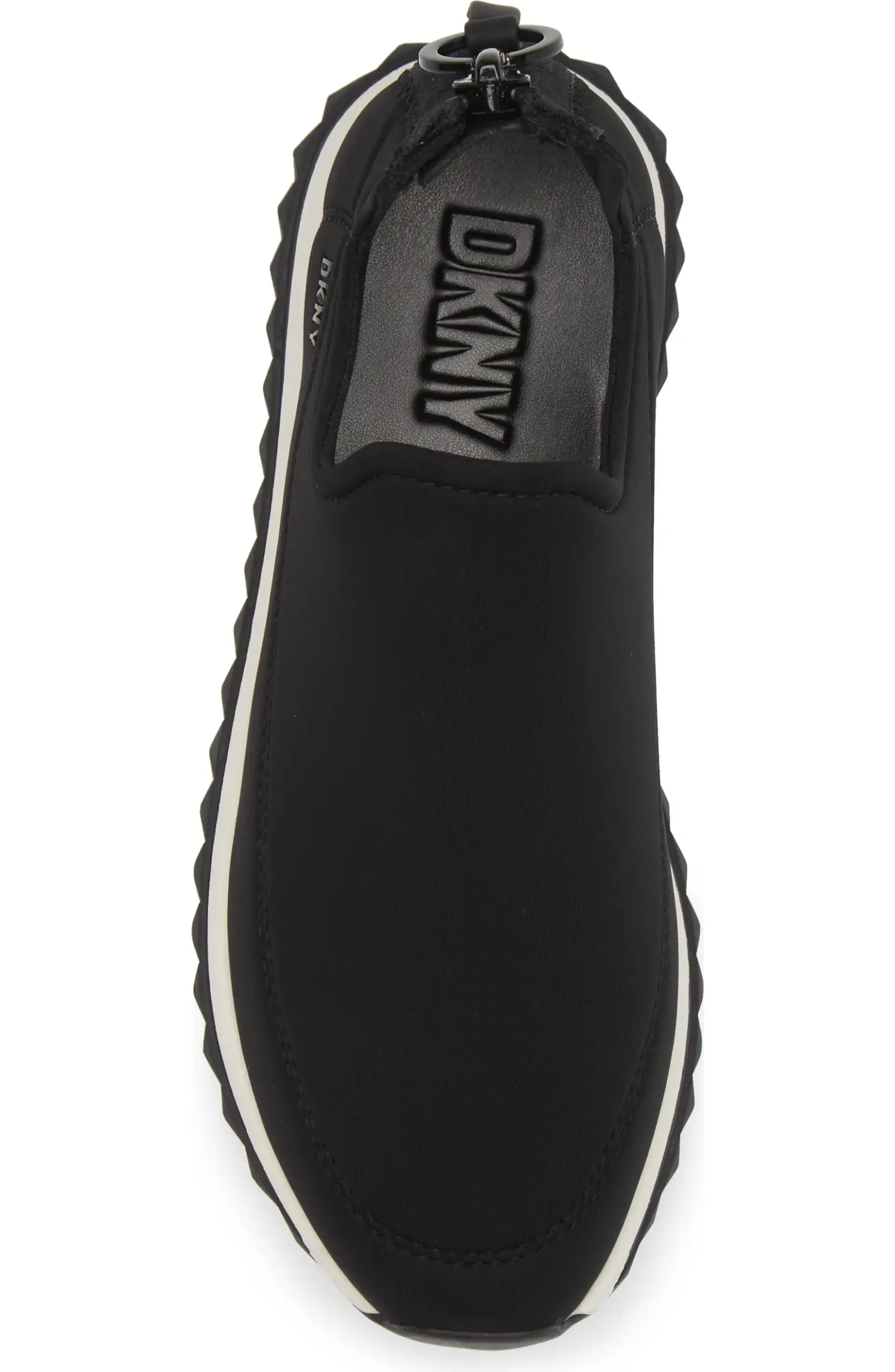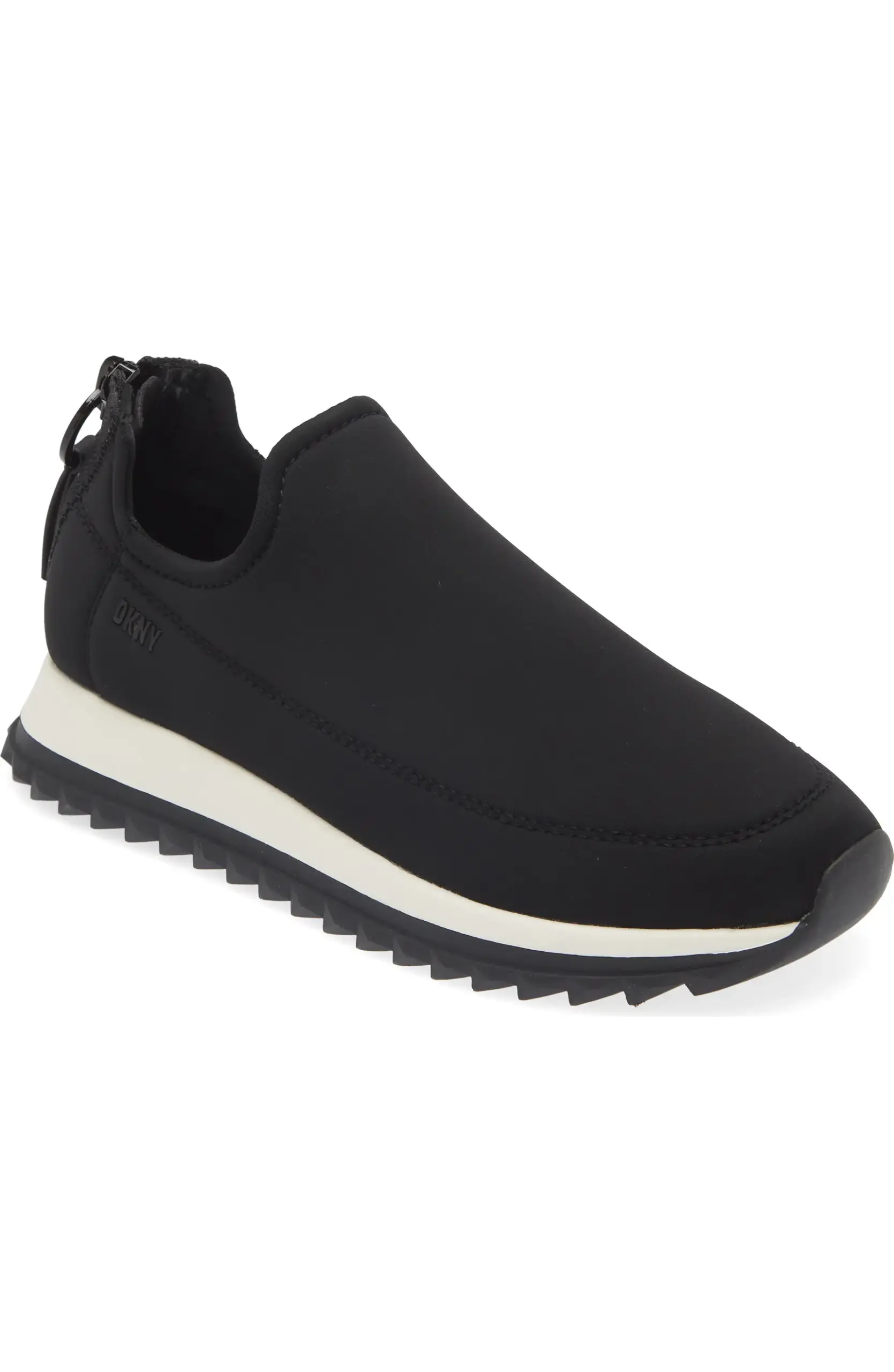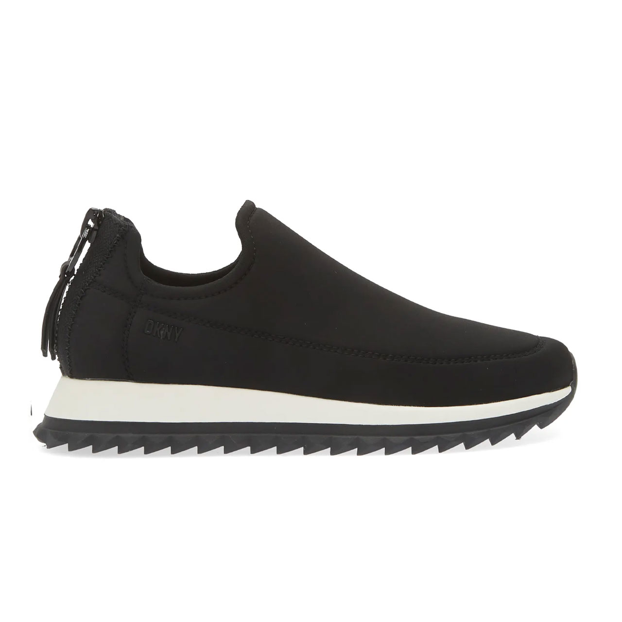 DKNY A features a saw-edge grip sole, enhancing the reliable traction of a future-forward sneaker crafted from stretch fabric and featuring a back zip closure. Back zip closure, Textile upper and lining/synthetic sole, Imported